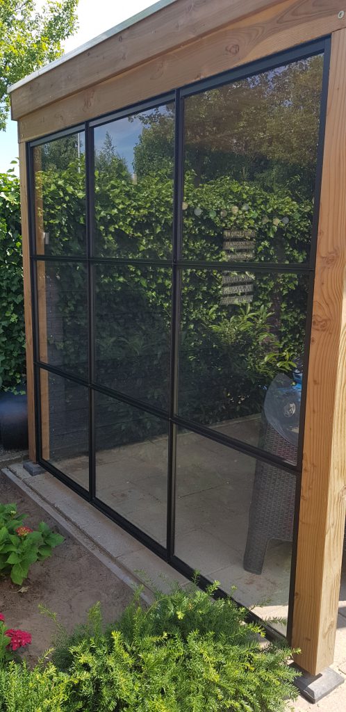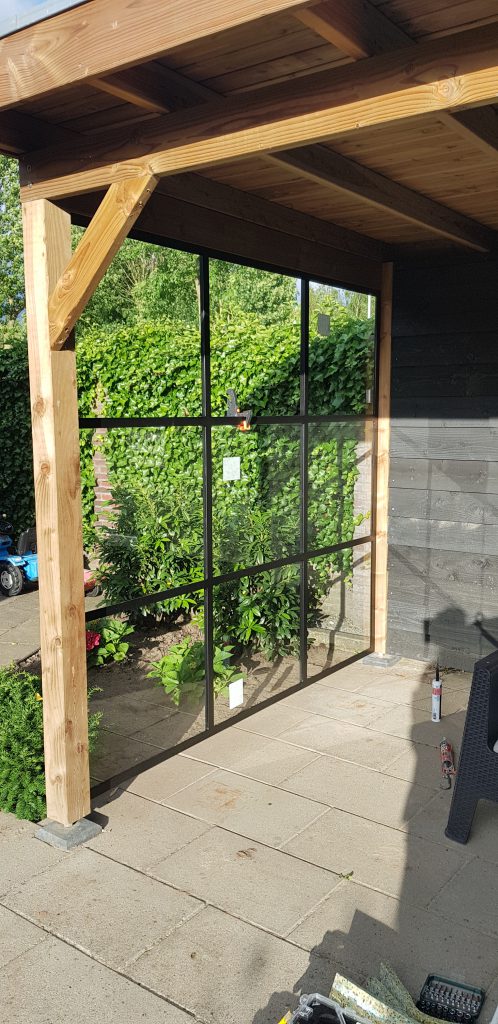 Glasmontage is specialistisch werk. Hiervoor schakelt u Waanders Schilderwerken in. Hieronder ziet u maatwerk op het gebied van glasmontage in een door Waanders Schilderwerken gefabriceerd stalen kozijn in een veranda. Na de intake maken wij met u een afspraak voor het opmeten van de ruimte waar het kozijn geplaatst moet worden. Wanneer de maten bekend zijn, maken wij voor u het stalen kozijn op maat inclusief de glasmontage. Binnen enkele weken plaatsen wij het nieuwe kozijn in uw veranda. Het resultaat is fantastisch.